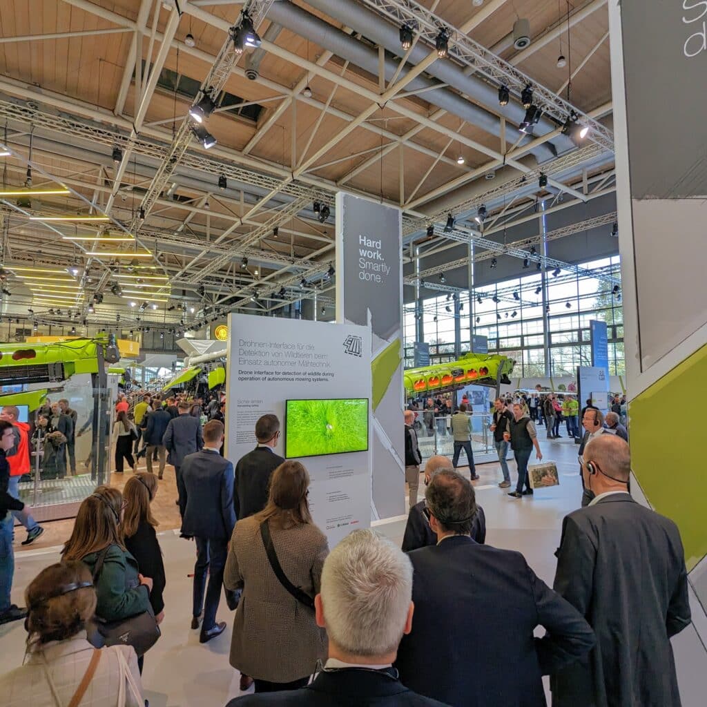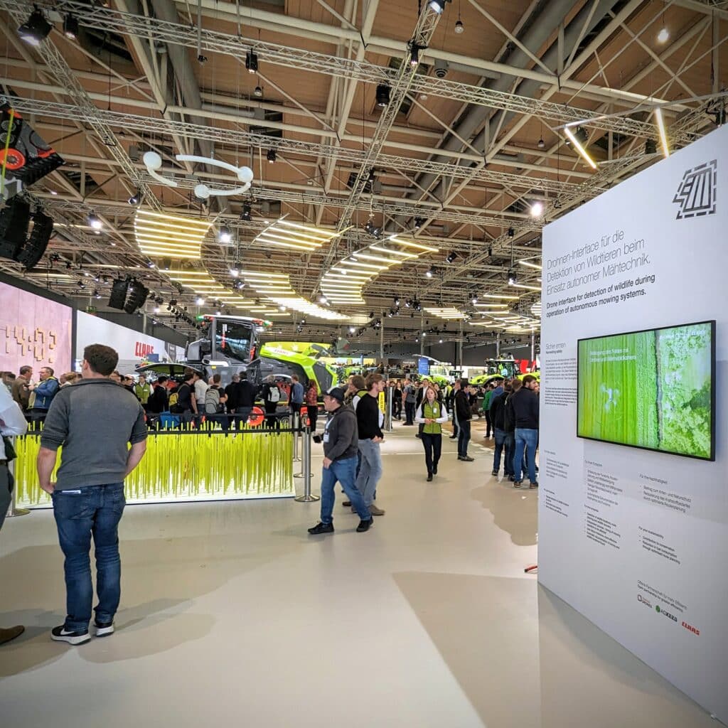 Im November waren wir auf der Agritechnica in Hannover und haben das Thema Wildtierschutz zusammen mit CLAAS und AGXEED auf dem größten Stand der Messe gebracht. Dort haben wir vorgestellt, wie Wildtierschutz schon heute beim Einsatz von autonomen Maschinen funktioniert. Die offene Kooperation mit unseren Partnern ist ein weiterer Schritt um unser Anliegen, Wildtierschutz auf allen Flächen umzusetzen, zu realisieren. Wir arbeiten am vollautomatischen System für den Wildtierschutz der Zukunft.