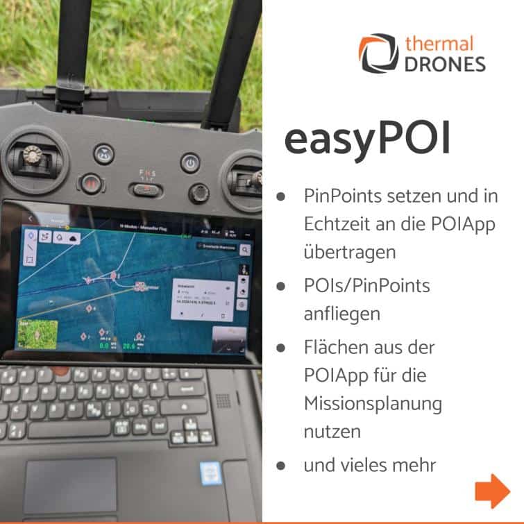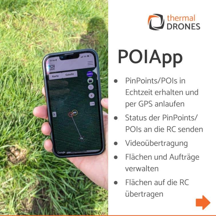 Außerdem wird es in Kürze möglich sein das aktuelle Videobild der Drohne direkt in die POIApp auf der die Smartphones der Helferinnen und Helfer im Feld zu übertragen.